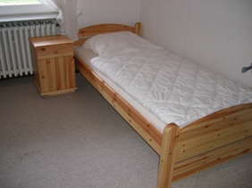 befindlichen Raumteil des Dreierzimmers mit zwei Betten.